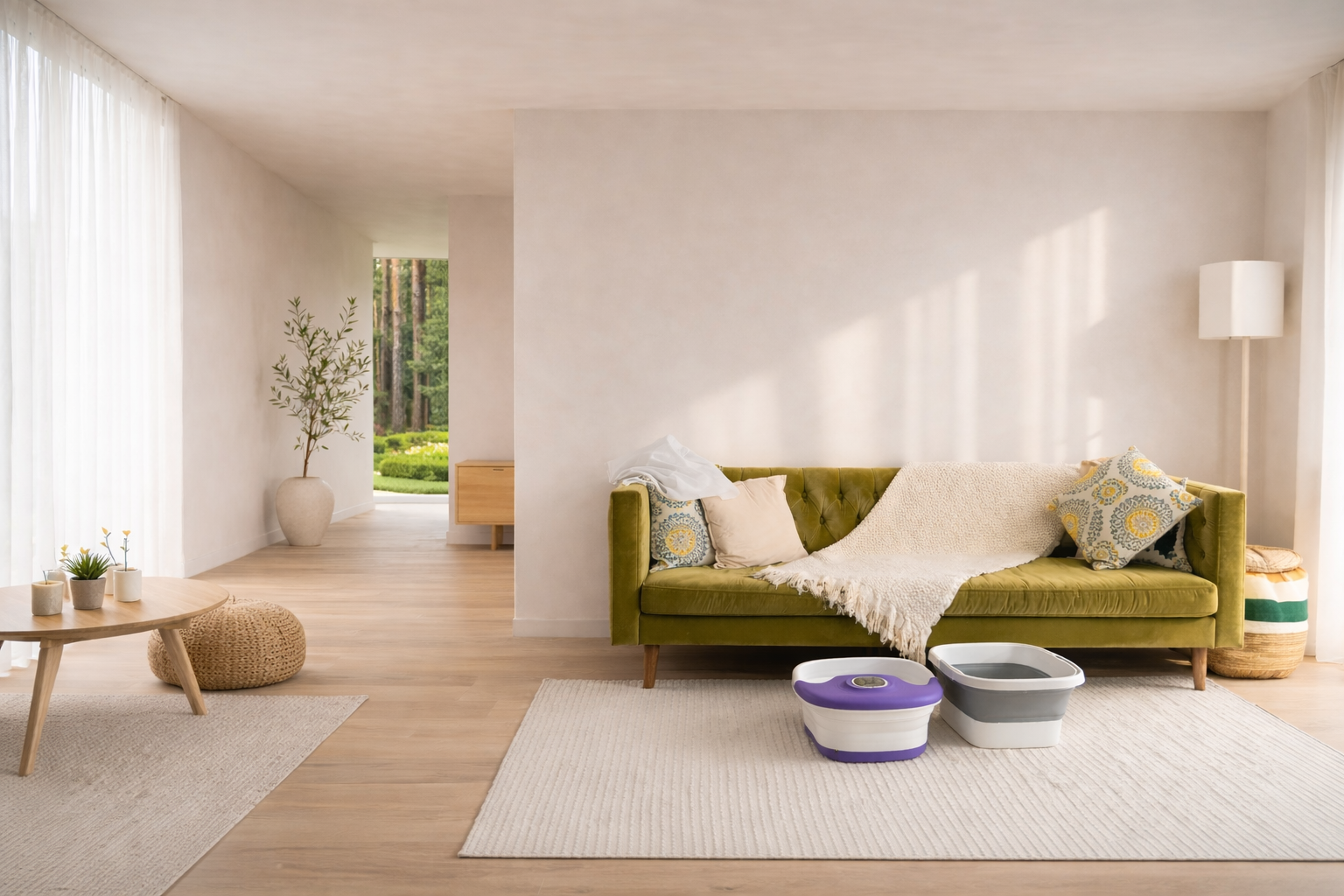 Immerse your feet in warm water for 2–5 minutes. Allow the body to relax and circulation to open.