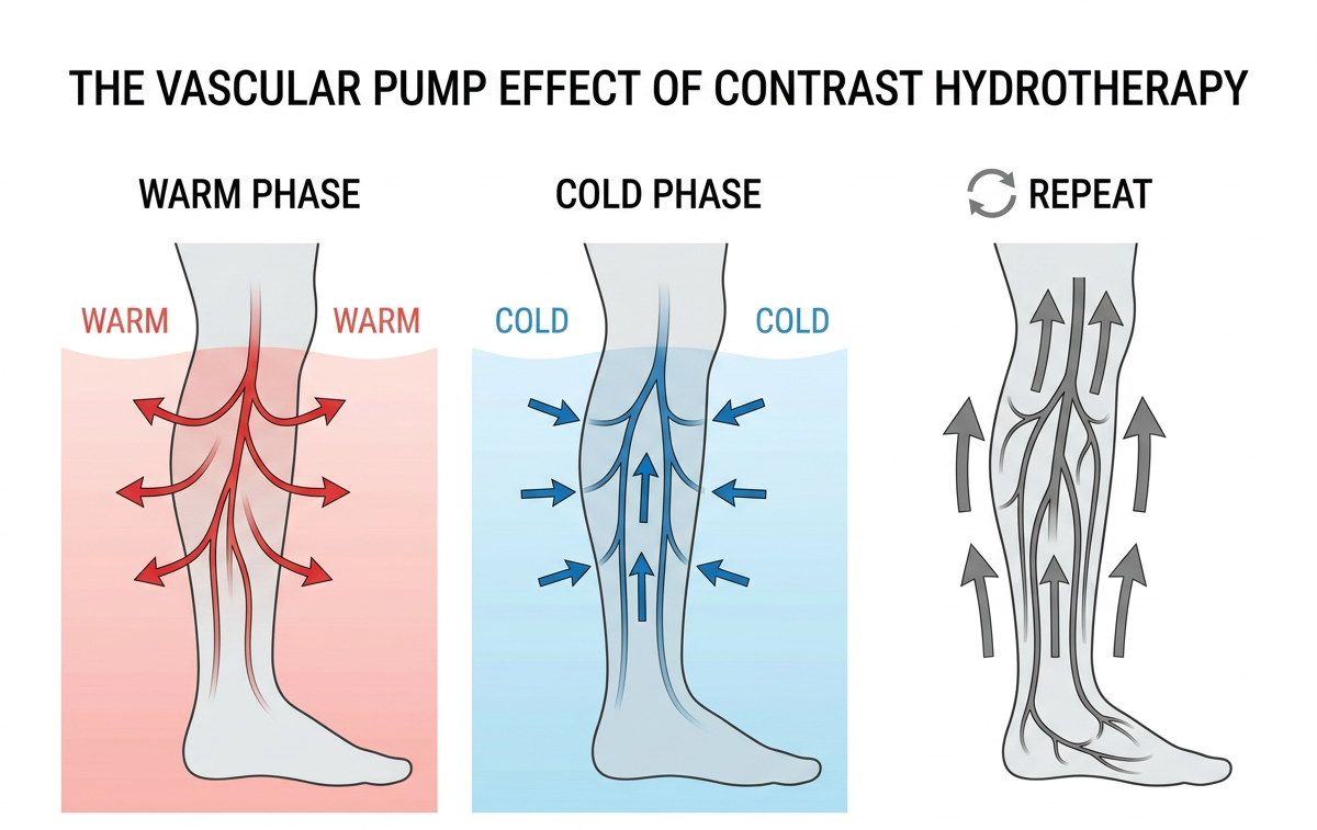 Each temperature shift creates a vascular pump effect:
